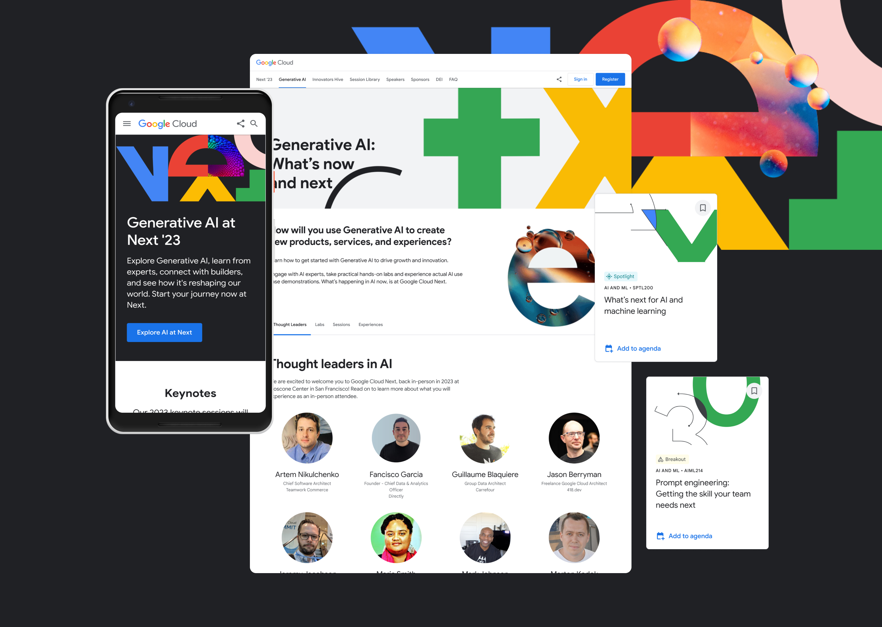 AI became one of the biggest draws to Next ’23. Earlier announcements around Gemini and Vertex AI significantly increased demand for AI-related sessions and content. While AI was added later in the project timeline, it was intentionally integrated across the platform rather than treated as a one-off feature.