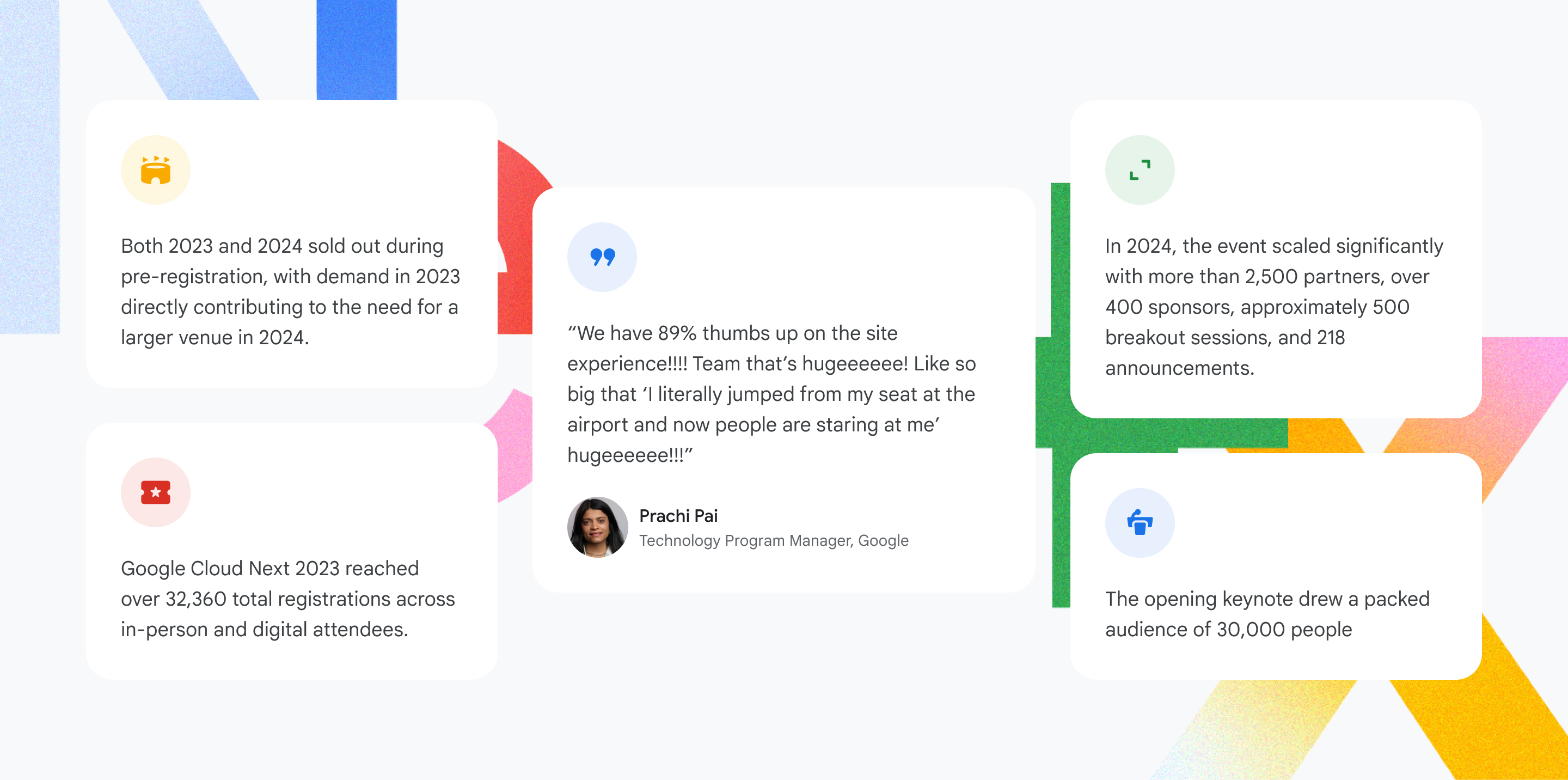 Google Cloud Next is Google Cloud’s flagship annual conference, bringing together developers, IT leaders, and businesses to learn about new products and platform capabilities. In 2023 and 2024, the focus shifted from scaling the event to improving the quality of the attendee experience.